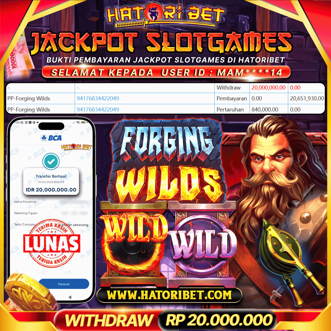 HATORIBET JACKPOT SLOTGAMES PP-FORGING WILDS 20,000,000 ,- LUNAS