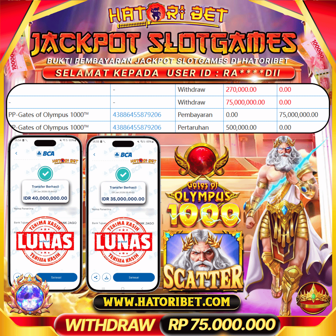 HATORIBET JACKPOT SLOTGAMES PP-GATES OF OLYMPUS 1000 RP 75,000,000 ,- LUNAS