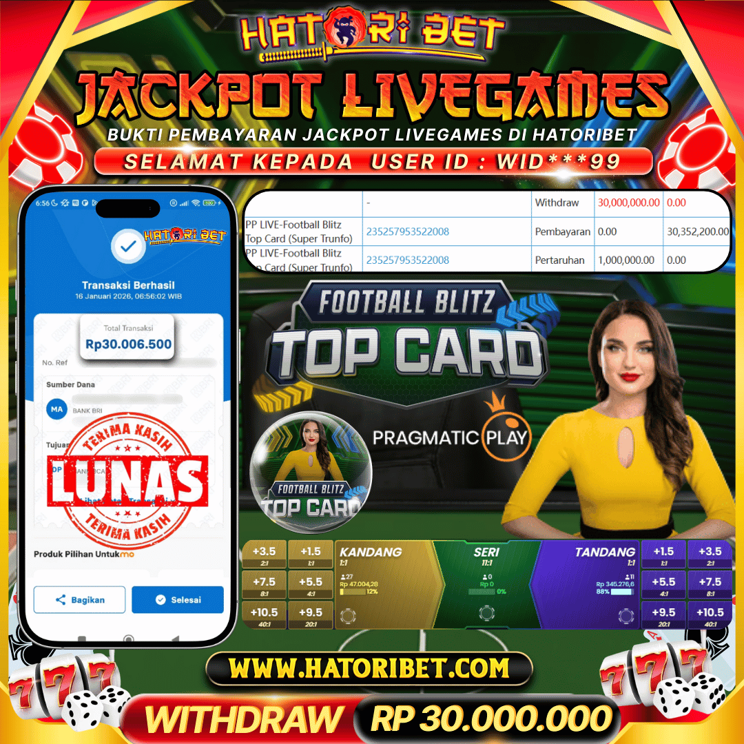 HATORIBET JACKPOT LIVEGAMES PP LIVE-FOOTBALL BLITZ TOP CARD (SUPER TRUNFO) RP 30,000,000 ,- LUNAS