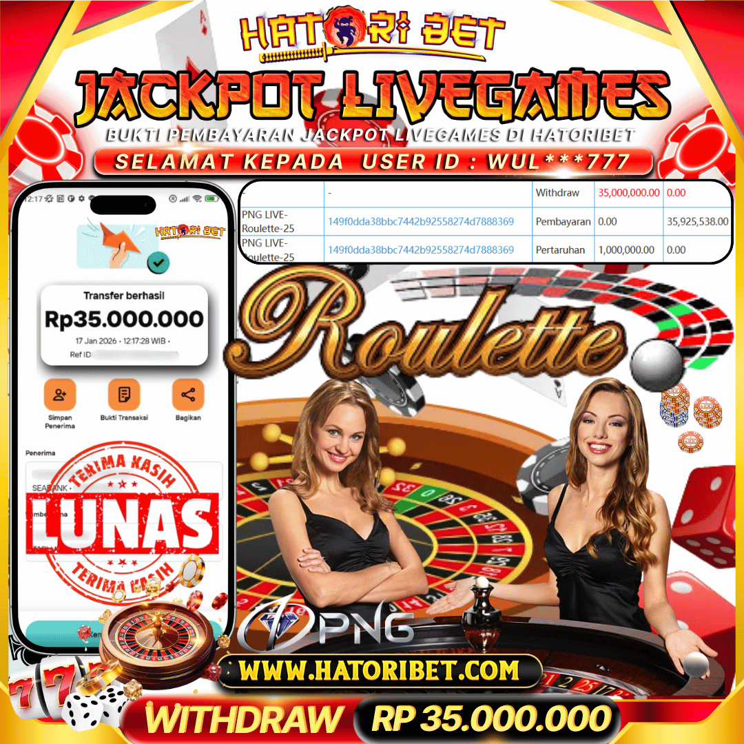 HATORIBET JACKPOT LIVEGAMES PNG LIVE-ROULETTE-25 RP 35,000,000 ,- LUNAS
