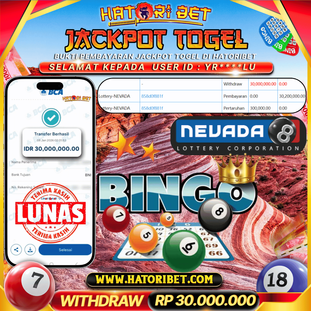 HATORIBET JACKPOT TOGEL NEVADA RP 30,000,000 ,- LUNAS