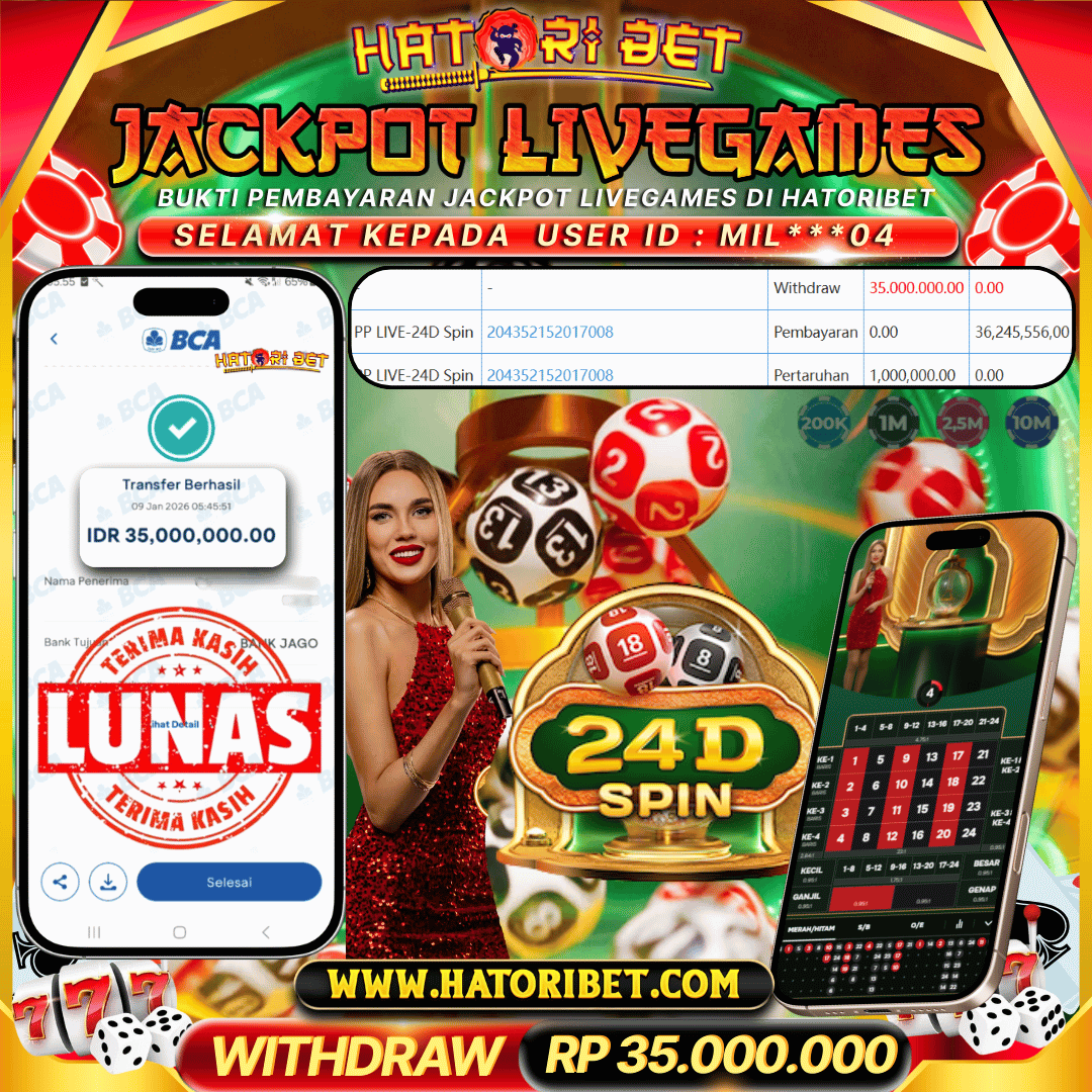 HATORIBET JACKPOT LIVEGAMES PP LIVE-24D SPIN RP 35,000,000 ,- LUNAS