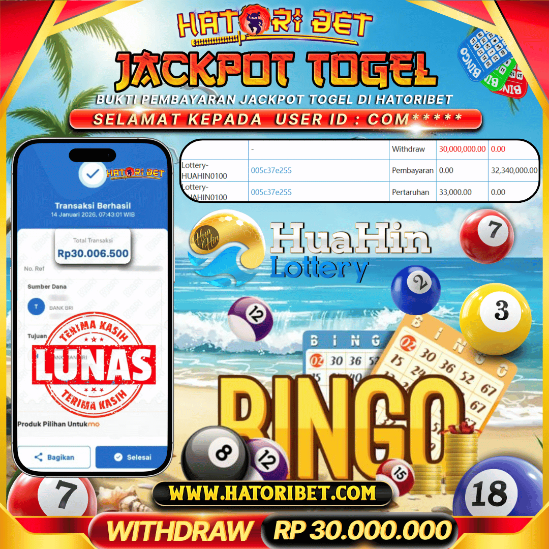 HATORIBET JACKPOT TOGEL HUAHIN RP 30,000,000 ,- LUNAS