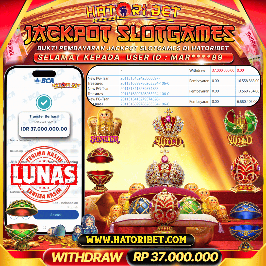 Selamat kepada UserId : MAR****89 telah berhasil mendapatkan kemenangan besar pada permainan SLOTGAMES NEW PG SOFT-TSAR TREASURES sebesar RP 37,000,000 , Setelah mengisi formulir withdraw dalam kurung waktu hanya 5 – 10 menit pihak HatoriBet sudah melakukan transfer kepada pemilik UserId dan dana sudah dapat di cairkan oleh pemenang. Bukti pembayaran yang kami berikan merupakan bukti pembayaran yang SAH / VALID yang langsung di dapatkan melaui tanda transfer transaksi dari Bank yang di tuju. Kami mengucapakan banyak Terima Kasih Kepada pemenang karena sudah mempercayakan kami sebagai Bandar terpercaya yang membayar semua kemenangan member hingga lunas. Masih ragu dengan HatoriBet? Di mana bandar slot dan togel online sekarang yang terpercaya seperti hatoribet ? Bandar yang mengirimkan kemenangan member tanpa bertele – tele. Jadi.... tidak perlu khawatir pada situs HATORIBET karena kemenangan berapapun akan dibayarkan hingga lunas kepada pemenang.