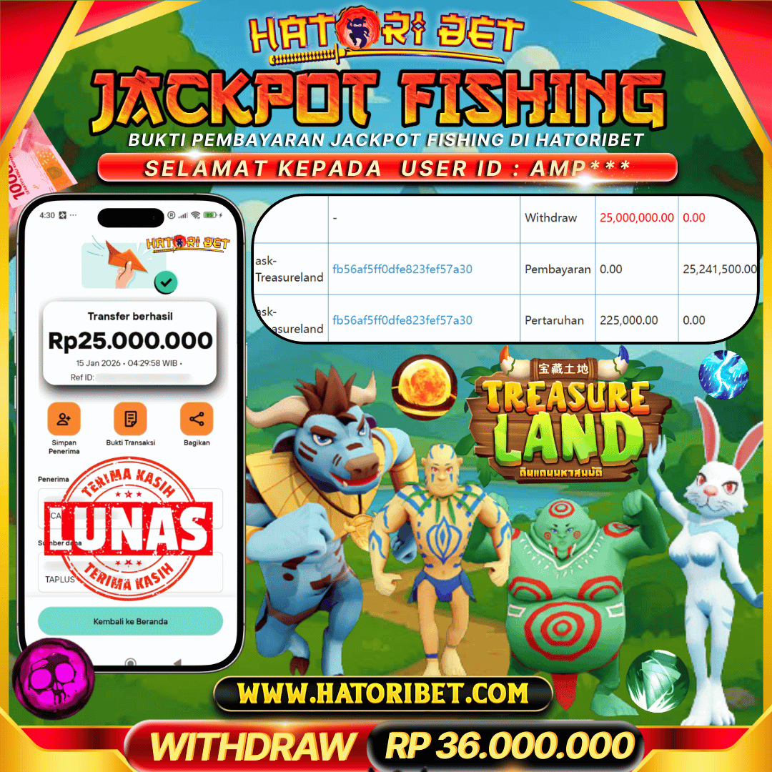 HATORIBET JACKPOT FISHING ASK-TREASURELAND RP 25,000,000 ,- LUNAS