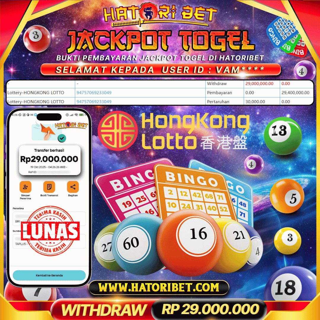 HATORIBET JACKPOT TOGEL HONGKONG RP 29,000,000 ,- LUNAS