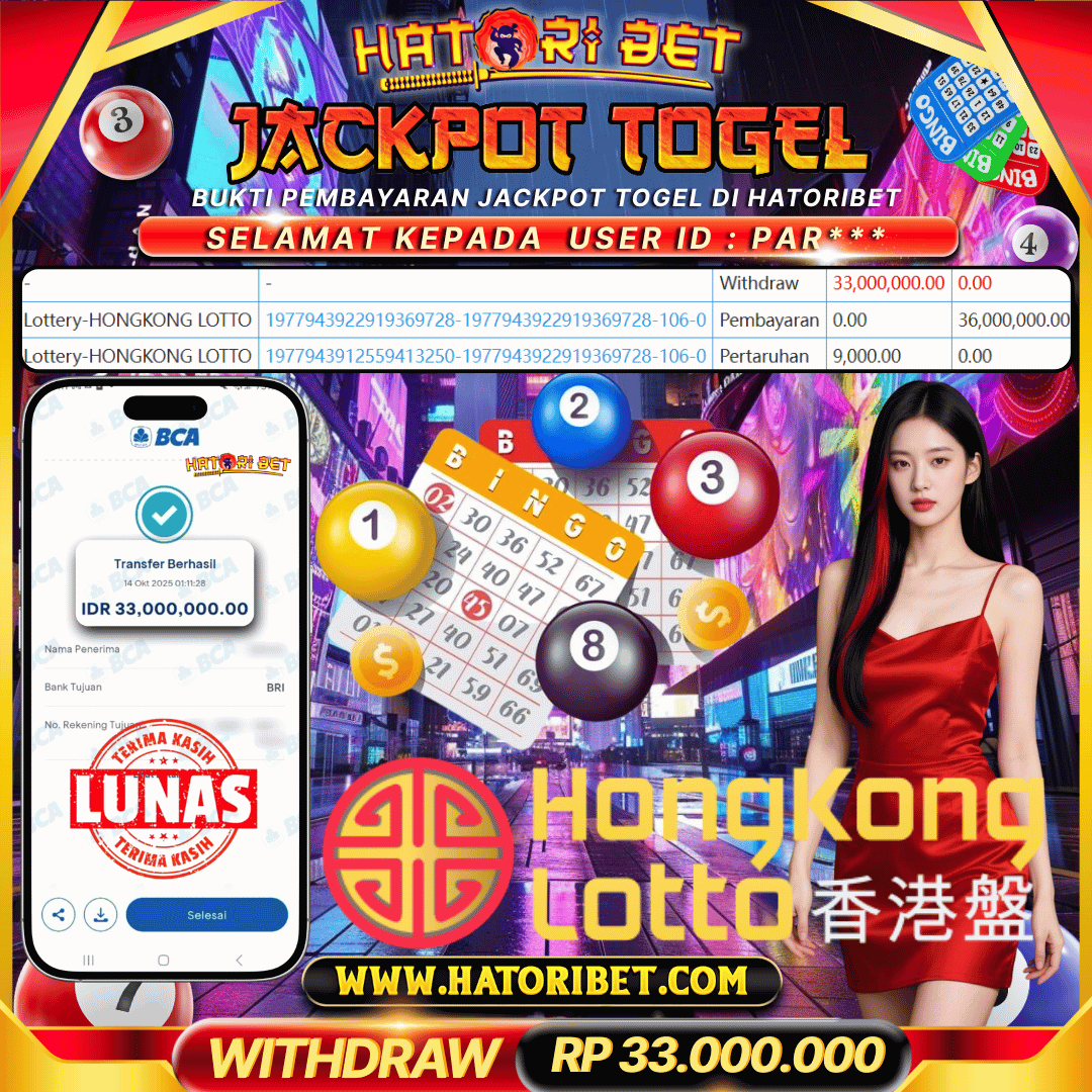 HATORIBET JACKPOT TOGEL HONGKONG RP 33,000,000 ,- LUNAS