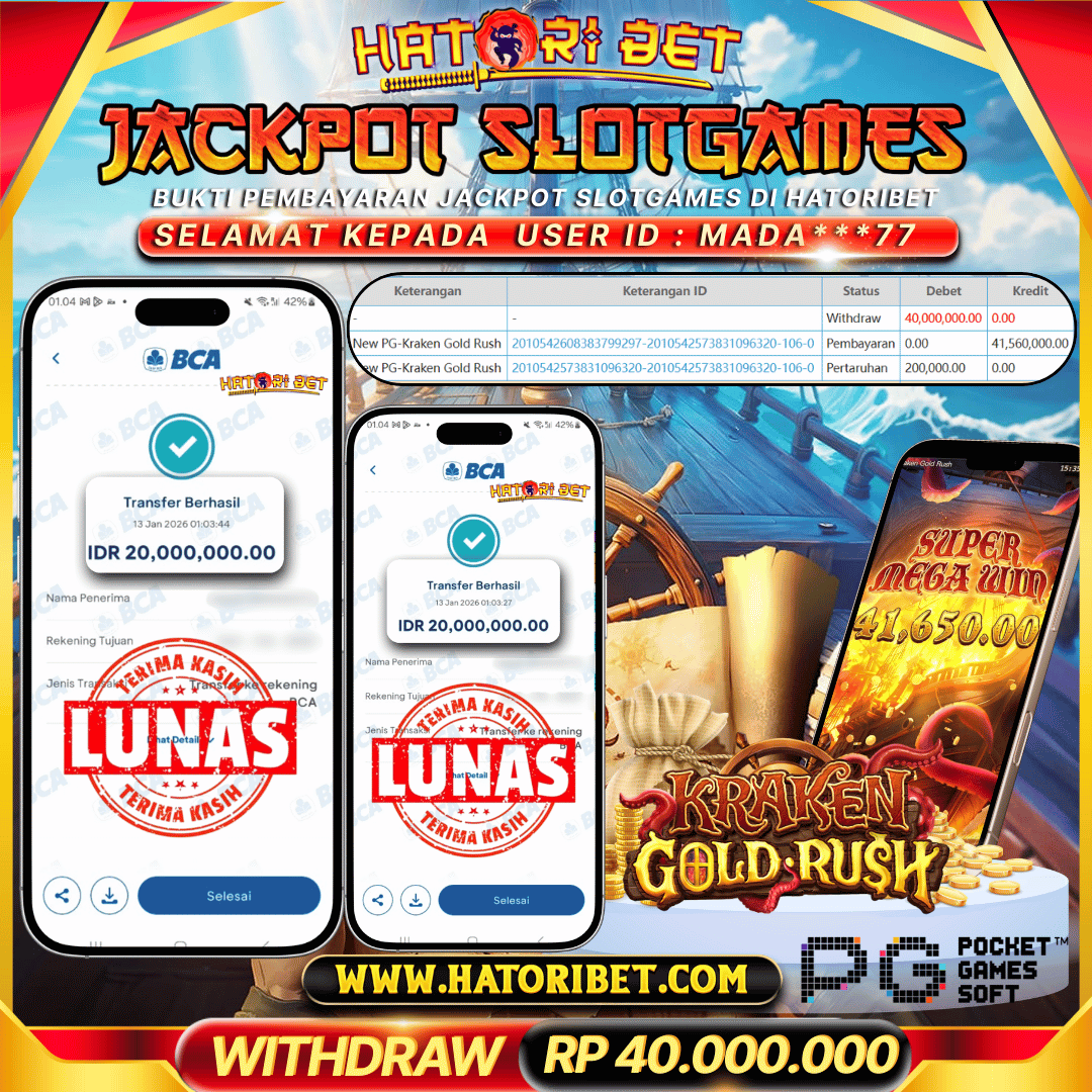 Selamat kepada UserId : MADA***77 telah berhasil mendapatkan kemenangan besar pada permainan SLOTGAMES NEW PG SOFT-KRAKEN GOLD RUSH sebesar RP 40,000,000 , Setelah mengisi formulir withdraw dalam kurung waktu hanya 5 – 10 menit pihak HatoriBet sudah melakukan transfer kepada pemilik UserId dan dana sudah dapat di cairkan oleh pemenang. Bukti pembayaran yang kami berikan merupakan bukti pembayaran yang SAH / VALID yang langsung di dapatkan melaui tanda transfer transaksi dari Bank yang di tuju. Kami mengucapakan banyak Terima Kasih Kepada pemenang karena sudah mempercayakan kami sebagai Bandar terpercaya yang membayar semua kemenangan member hingga lunas. Masih ragu dengan HatoriBet? Di mana bandar slot dan togel online sekarang yang terpercaya seperti hatoribet ? Bandar yang mengirimkan kemenangan member tanpa bertele – tele. Jadi.... tidak perlu khawatir pada situs HATORIBET karena kemenangan berapapun akan dibayarkan hingga lunas kepada pemenang.