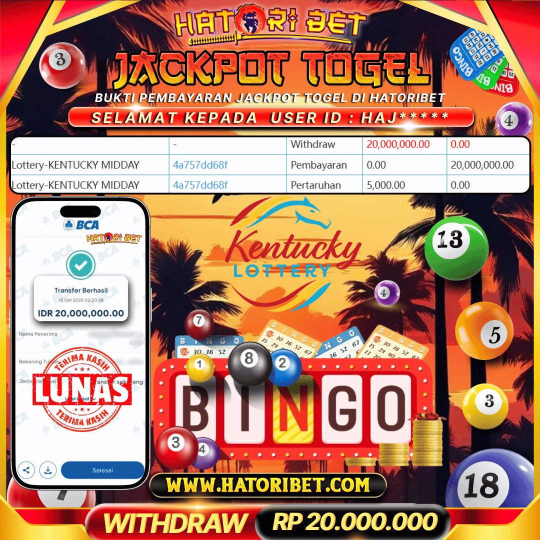 HATORIBET JACKPOT TOGEL KENTUCKY RP 20,000,000 ,- LUNAS