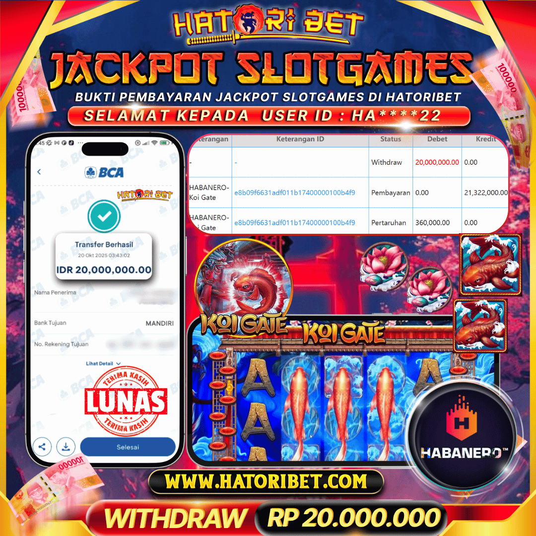 HATORIBET JACKPOT SLOTGAMES HABANERO-KOI GATE 20,000,000 ,- LUNAS