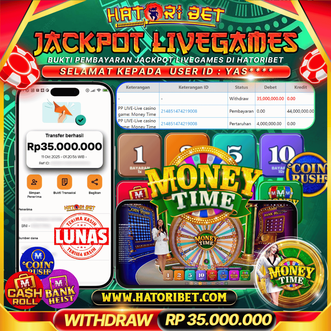 HATORIBET JACKPOT LIVEGAMES PP LIVE-MONEY TIME RP 35,000,000 ,- LUNAS