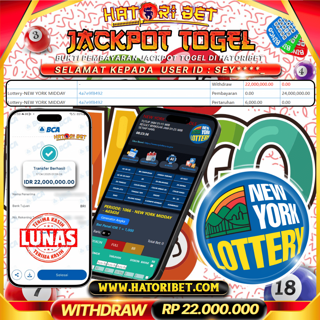 HATORIBET JACKPOT TOGEL NEW YORK RP 22,000,000 ,- LUNAS