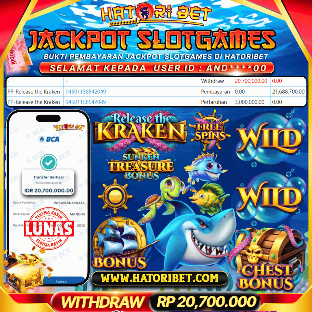 HATORIBET JACKPOT SLOTGAMES PP-RELEASE THE KRAKEN 20,700,000 ,- LUNAS