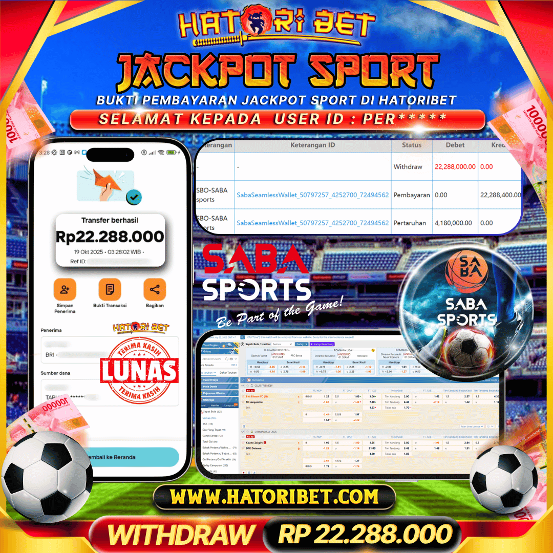 HATORIBET JACKPOT SPORT SABA RP 22,288,000 ,- LUNAS