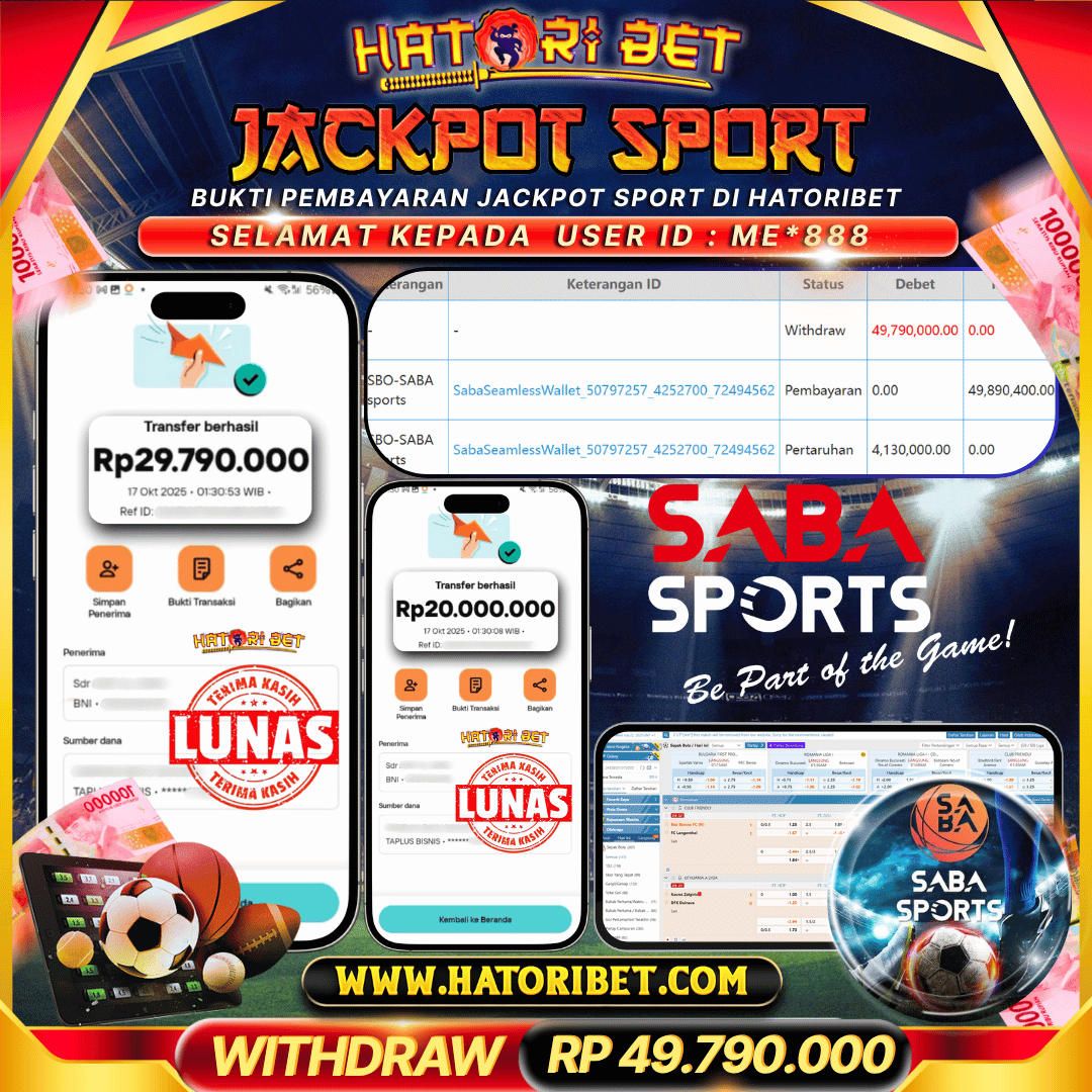 HATORIBET JACKPOT SPORT SABA RP 49,790,000 ,- LUNAS