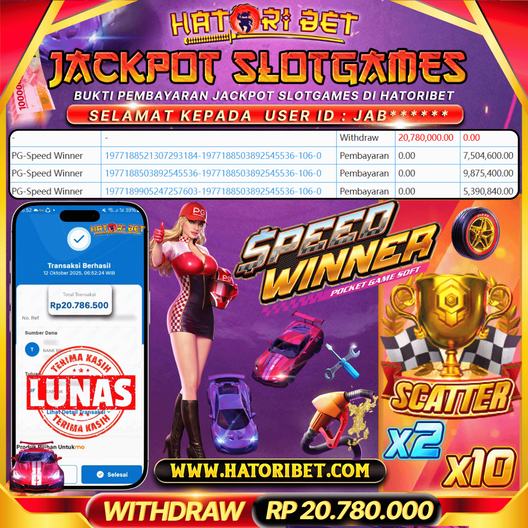 HATORIBET JACKPOT SLOTGAMES PG-SPEED WINNER 20,780,000 ,- LUNAS