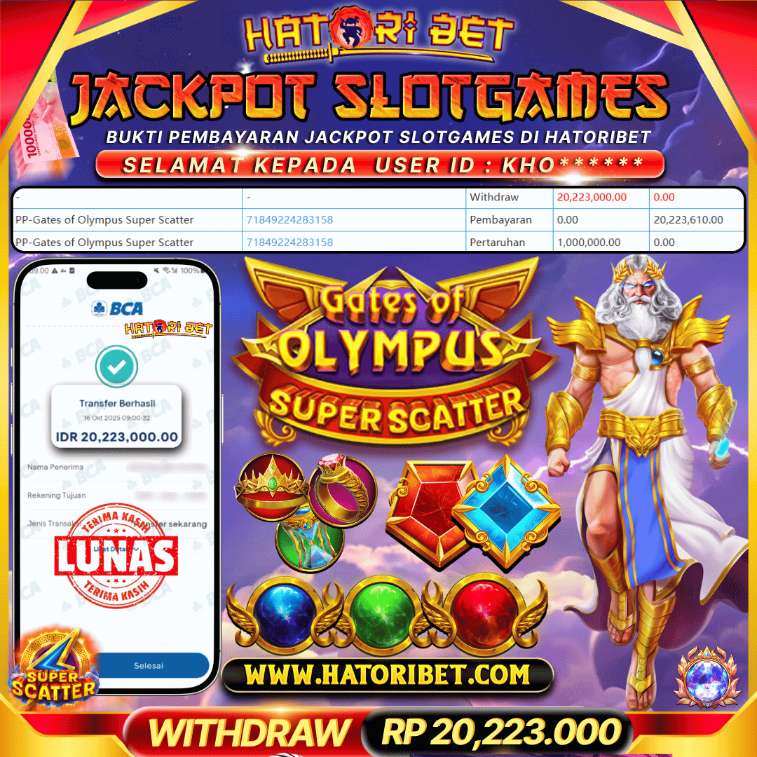 HATORIBET JACKPOT SLOTGAMES PP-GATES OF OLYMPUS SUPER SCATTER 20,223,000 ,- LUNAS