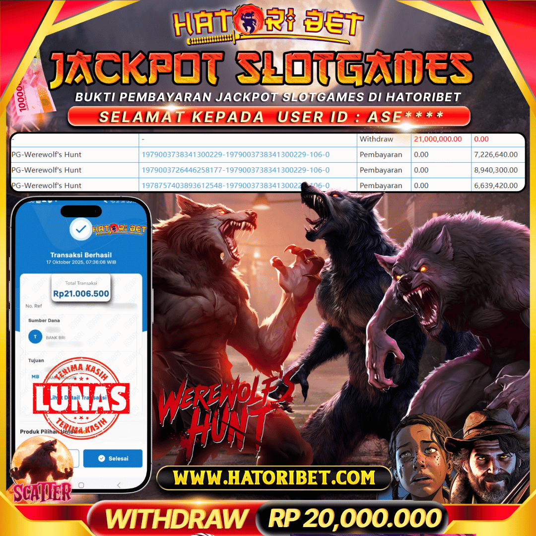 HATORIBET JACKPOT SLOTGAMES PG-WEREWOLF'S HUNT 20,000,000 ,- LUNAS