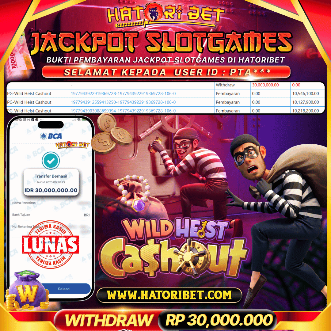 HATORIBET JACKPOT SLOTGAMES PG-WILD HEIST CASHOUT 30,000,000 ,- LUNAS